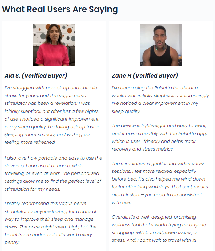 .My Personal Experience: After developing chronic fatigue following COVID-19, I was desperate for solutions. Within 3 weeks of using the Pulsetto device twice daily, my afternoon energy crashes reduced by 60%. I could finally make it through a workday without needing a 2-hour nap.